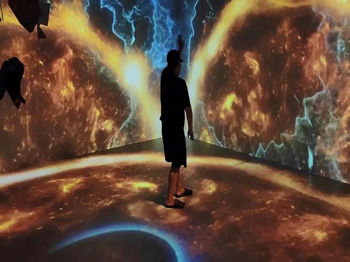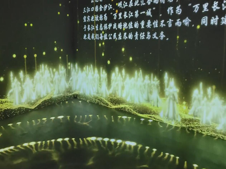 當(dāng)科技與歷史奇妙結(jié)合,站在長(zhǎng)江的源頭,你將化身為一名長(zhǎng)江守護(hù)者,在光影交互中回到過(guò)去,既感受長(zhǎng)江源遠(yuǎn)流長(zhǎng)的歷史,又參與到古城與長(zhǎng)江的守護(hù)中去。“風(fēng)起長(zhǎng)江”全景聲沉浸式劇場(chǎng)將在宜賓合江門(mén)廣場(chǎng)夾鏡樓正式與觀眾見(jiàn)面,通過(guò)“聲光影”交互技術(shù),內(nèi)置先進(jìn)的全景聲和杜比環(huán)繞音效,以極致的視效、音效加持,帶給觀眾非凡的感官體驗(yàn)。呈現(xiàn)了包括宜賓的自然與人文風(fēng)光在內(nèi)的多種中國(guó)元素:月亮田、蜀南竹海、興文石海等。全劇以表達(dá)“保護(hù)長(zhǎng)江生態(tài)水資源”為主題,以現(xiàn)代視角穿越古今歷史,向觀眾全方位呈現(xiàn)宜賓和長(zhǎng)江的文化脈絡(luò)?,F(xiàn)場(chǎng)通過(guò)歷史文化長(zhǎng)廊、溶洞洞穴、酒圣山、三江口四個(gè)空間布景串聯(lián)演繹,在視覺(jué)創(chuàng)意與全息投影、三維立體聲效等多種數(shù)字媒體技術(shù)的綜合運(yùn)用下,營(yíng)造出波瀾壯闊的觀劇體驗(yàn)。